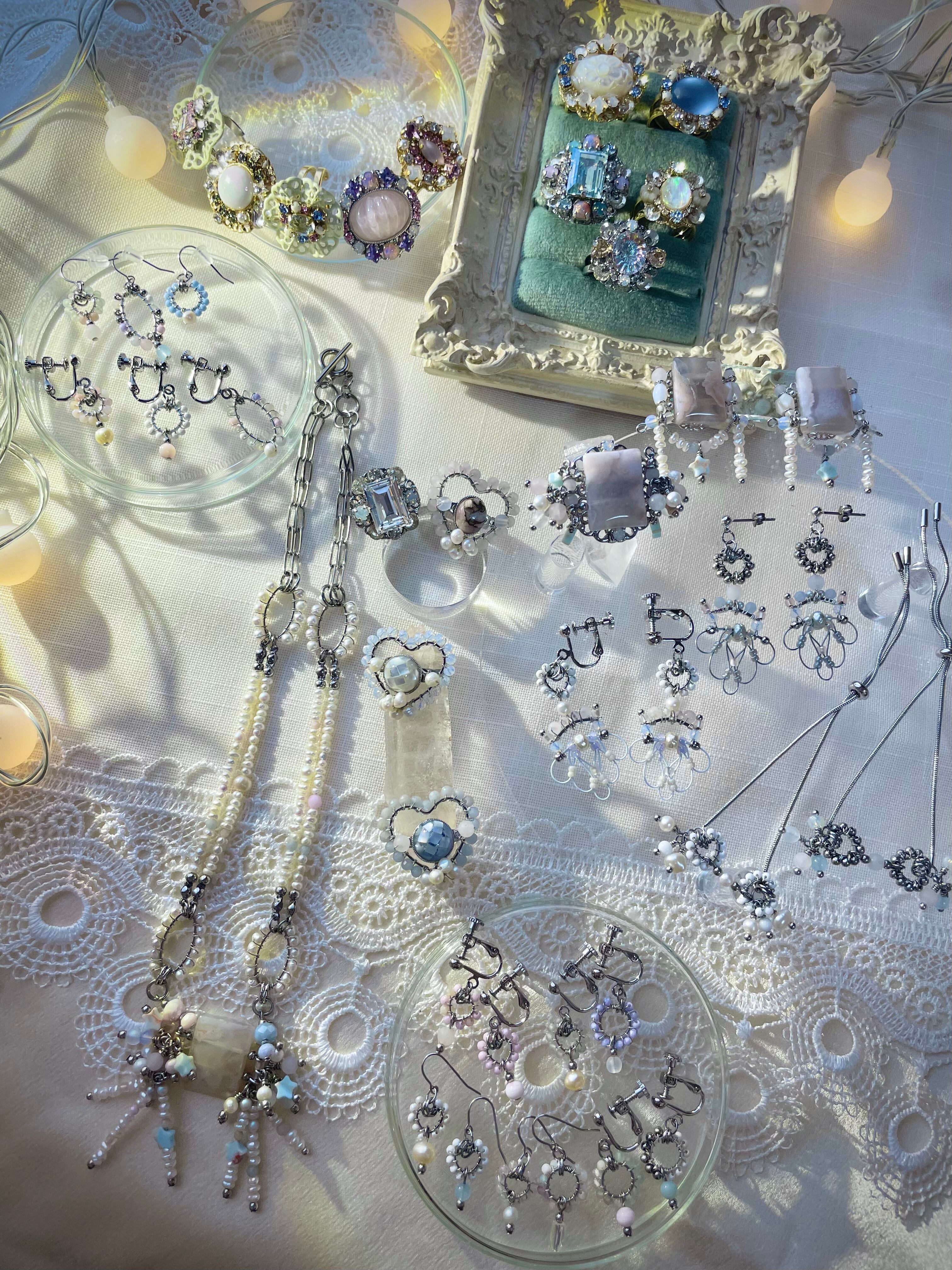 ※手作業、ヴィンテージのパーツを使用しているためサイズに差異があり一つずつパーツの配置と形が変わります