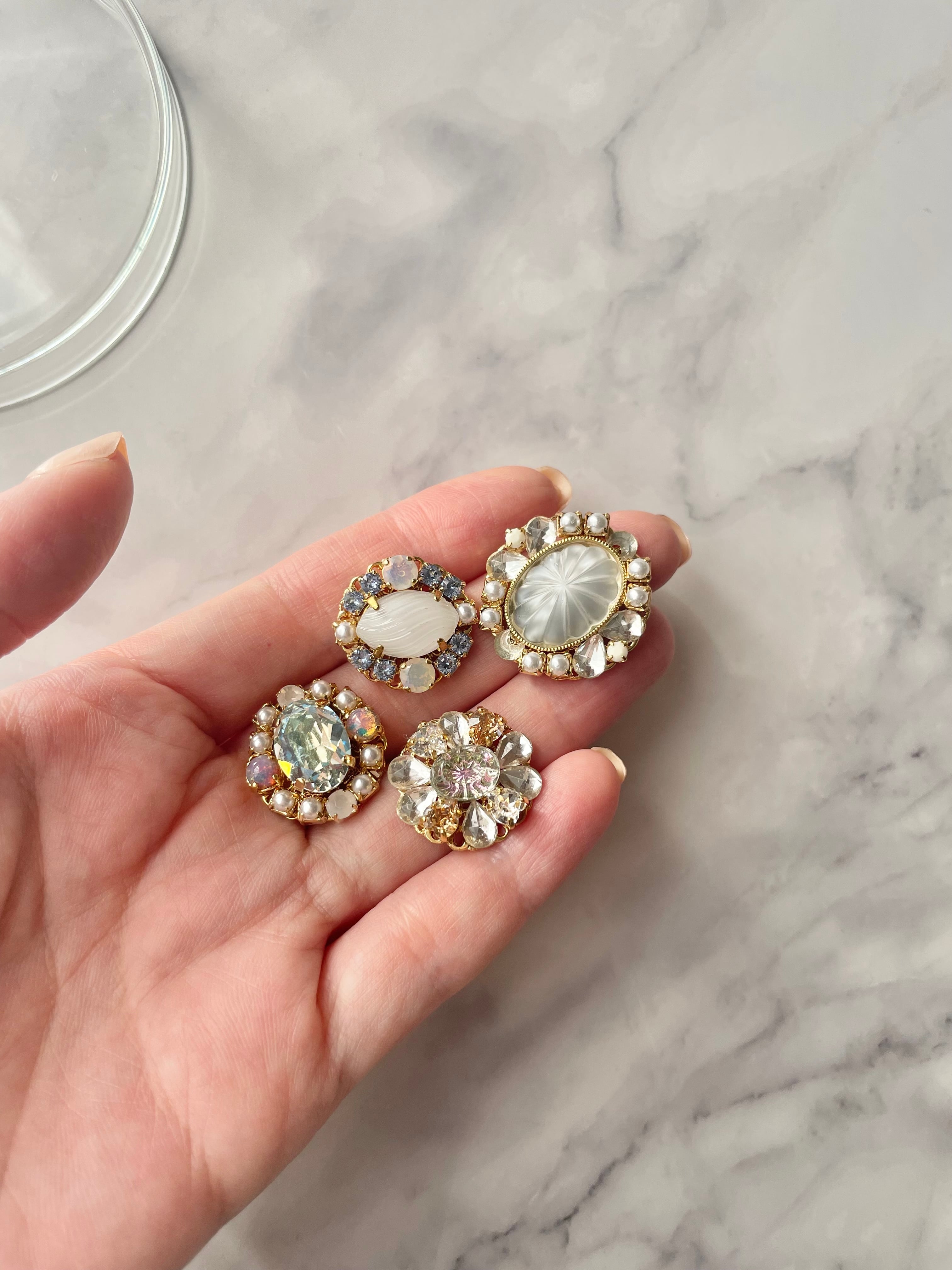2、ガラス、オパール、プラスチック、真鍮など ※中央のカボションはヴィンテージの(ドイツ)ガラスです