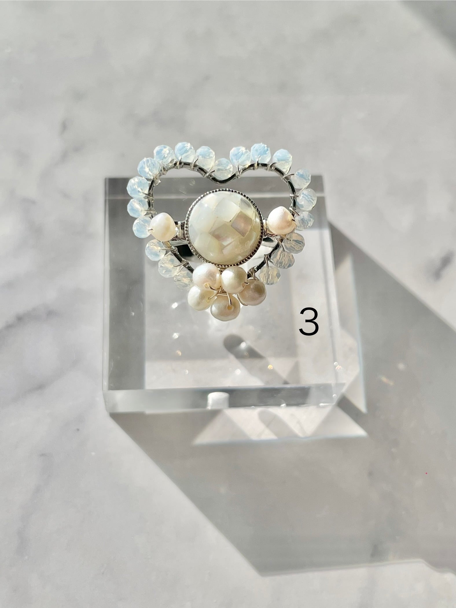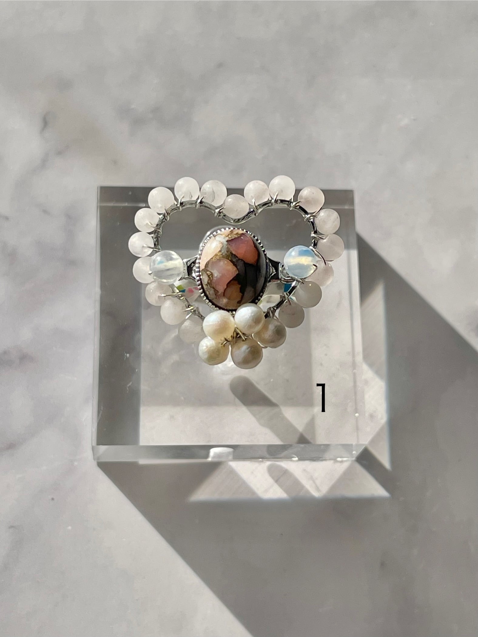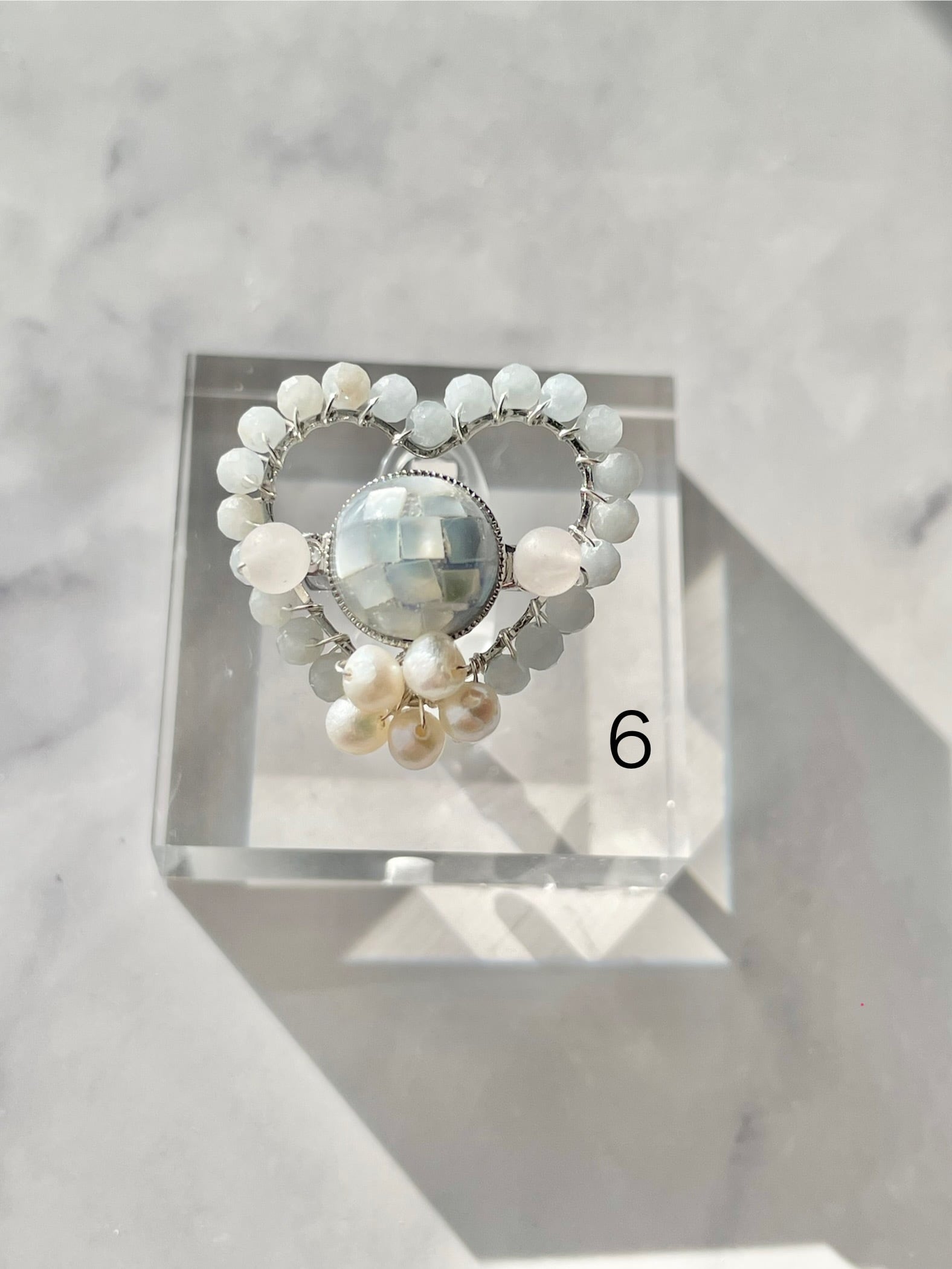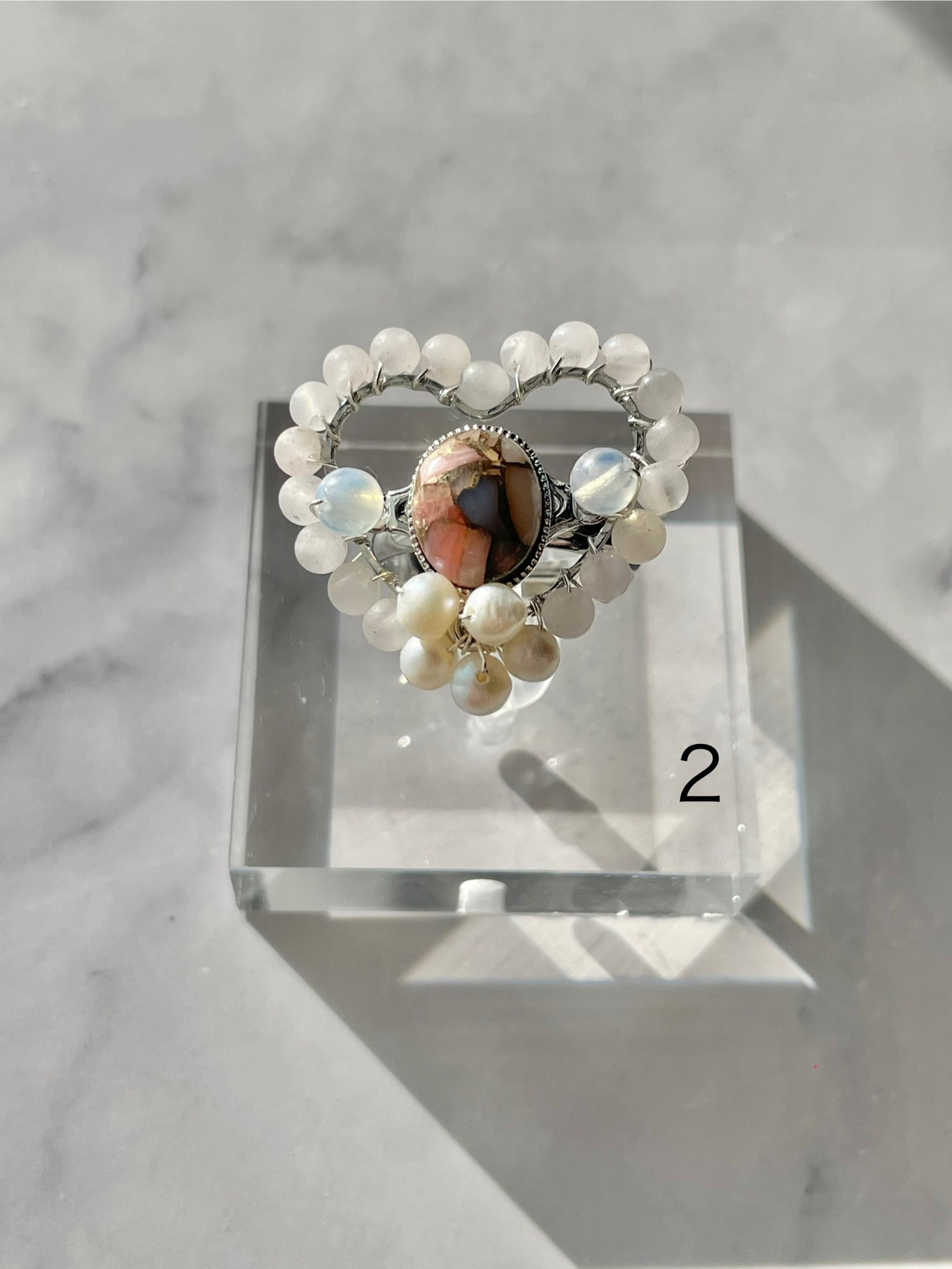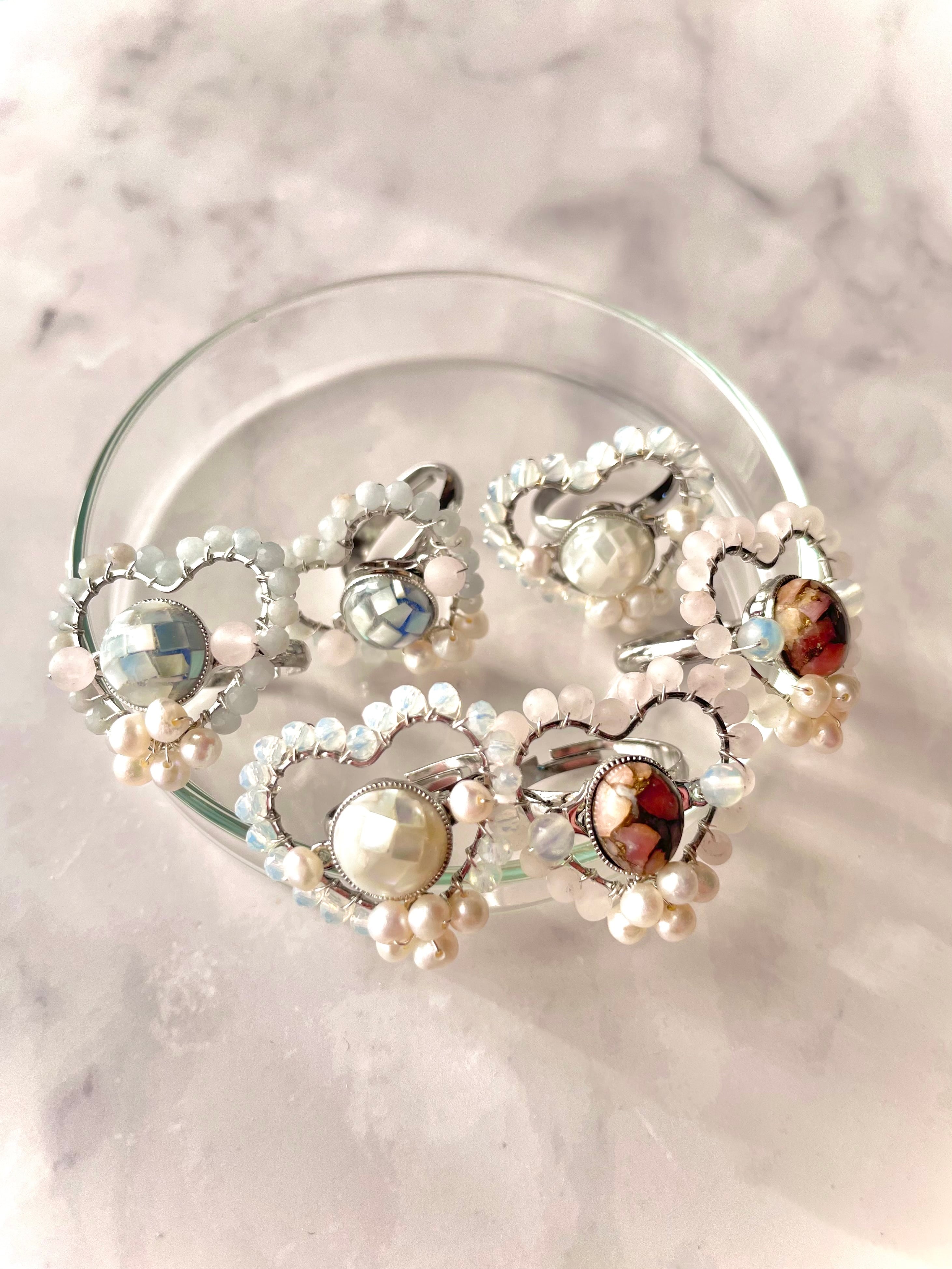 1、2:ローズクォーツ、合成石、淡水パールなど