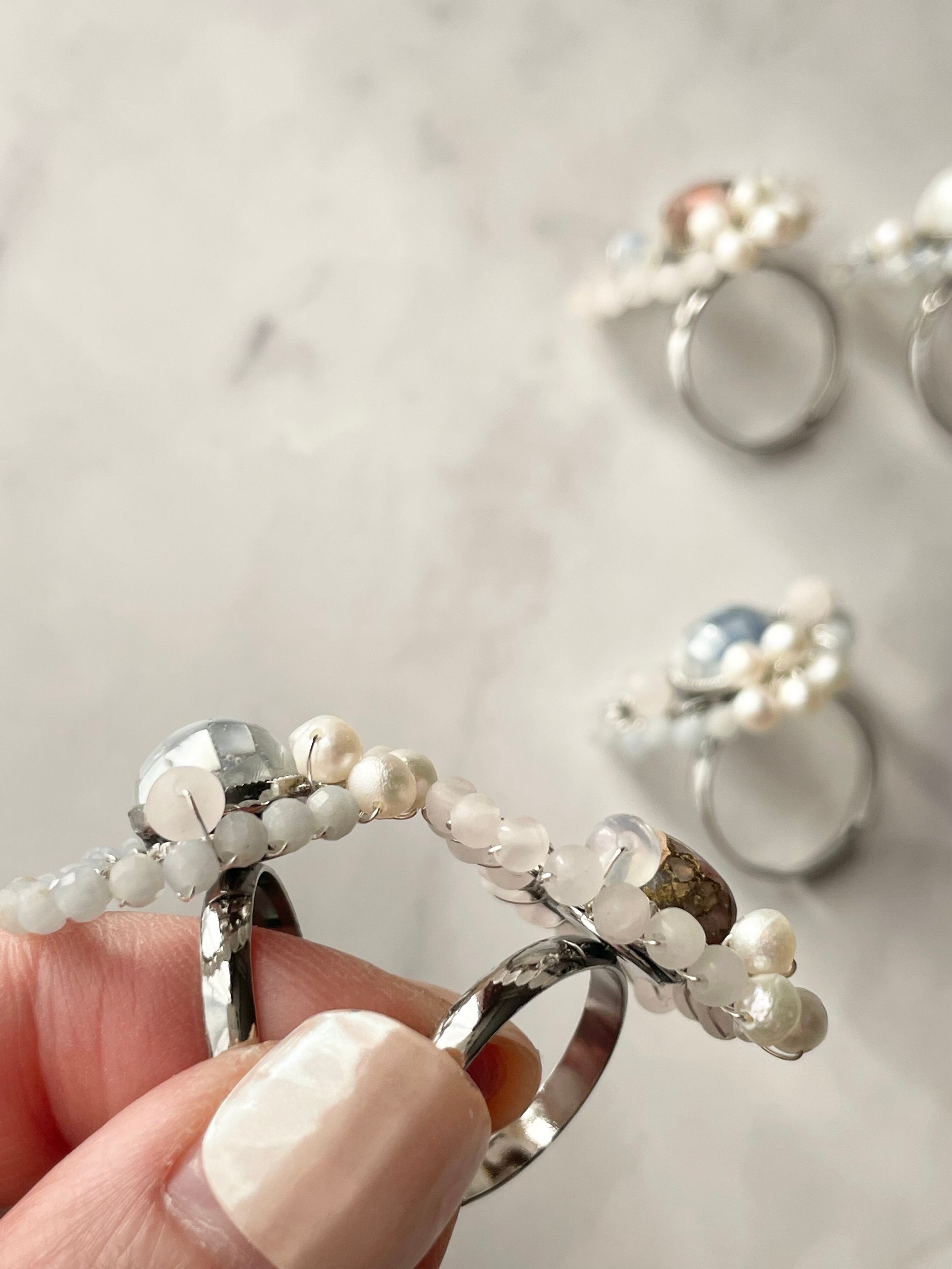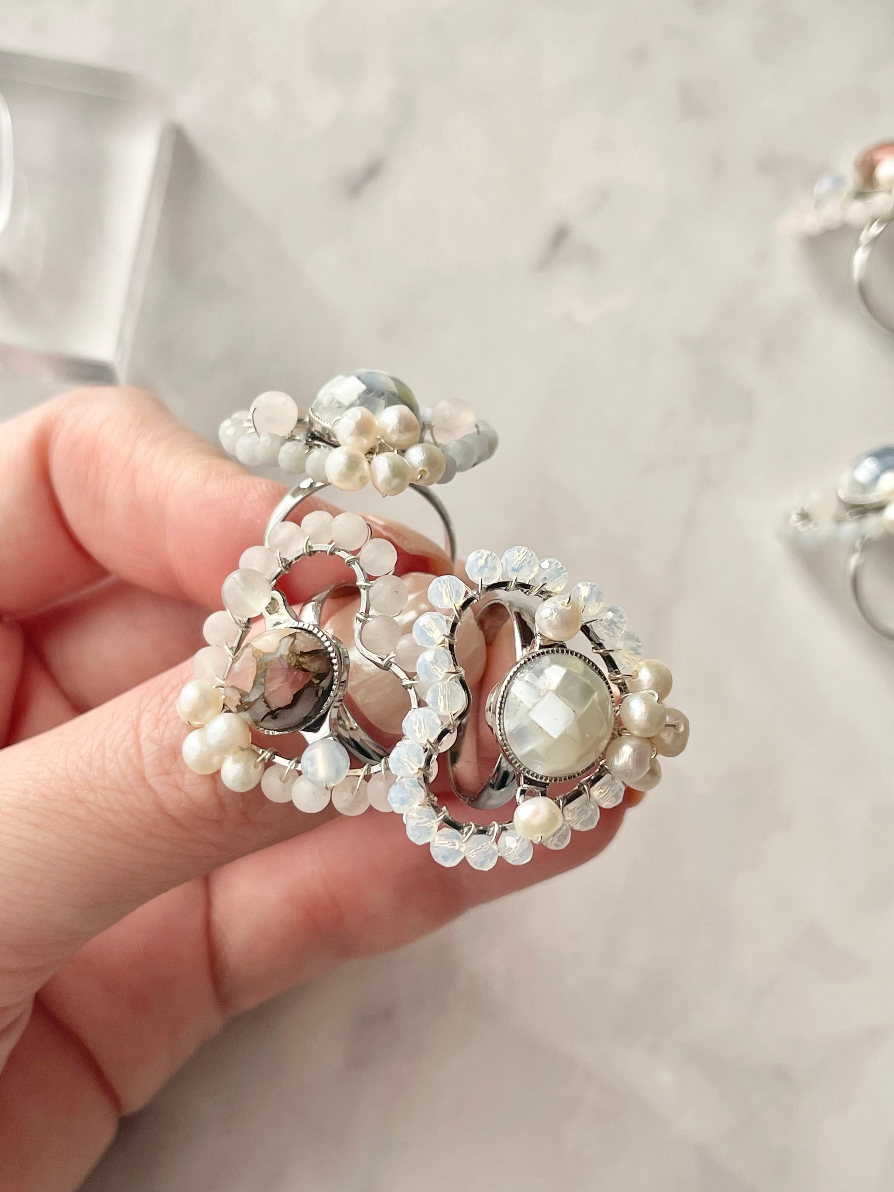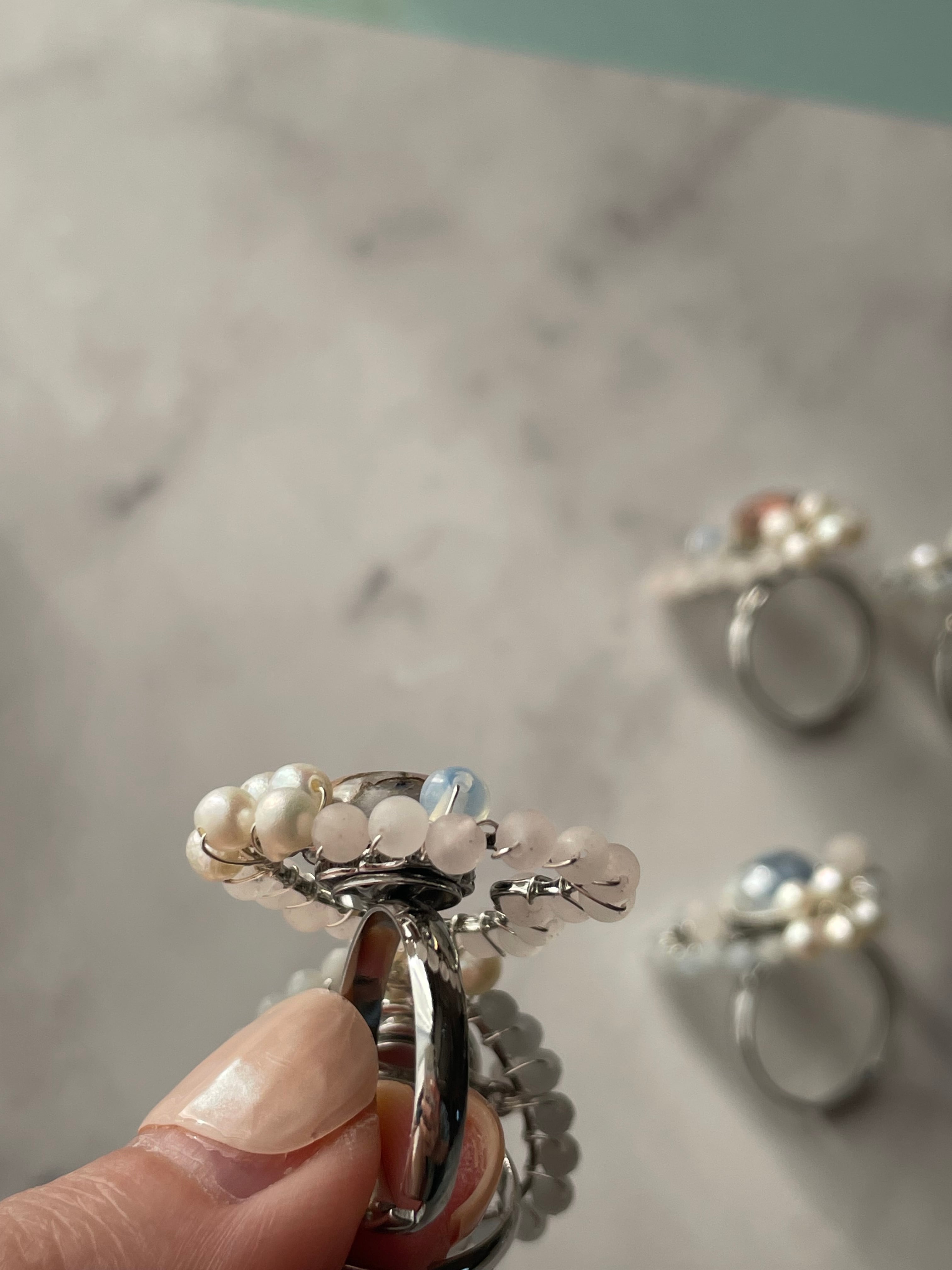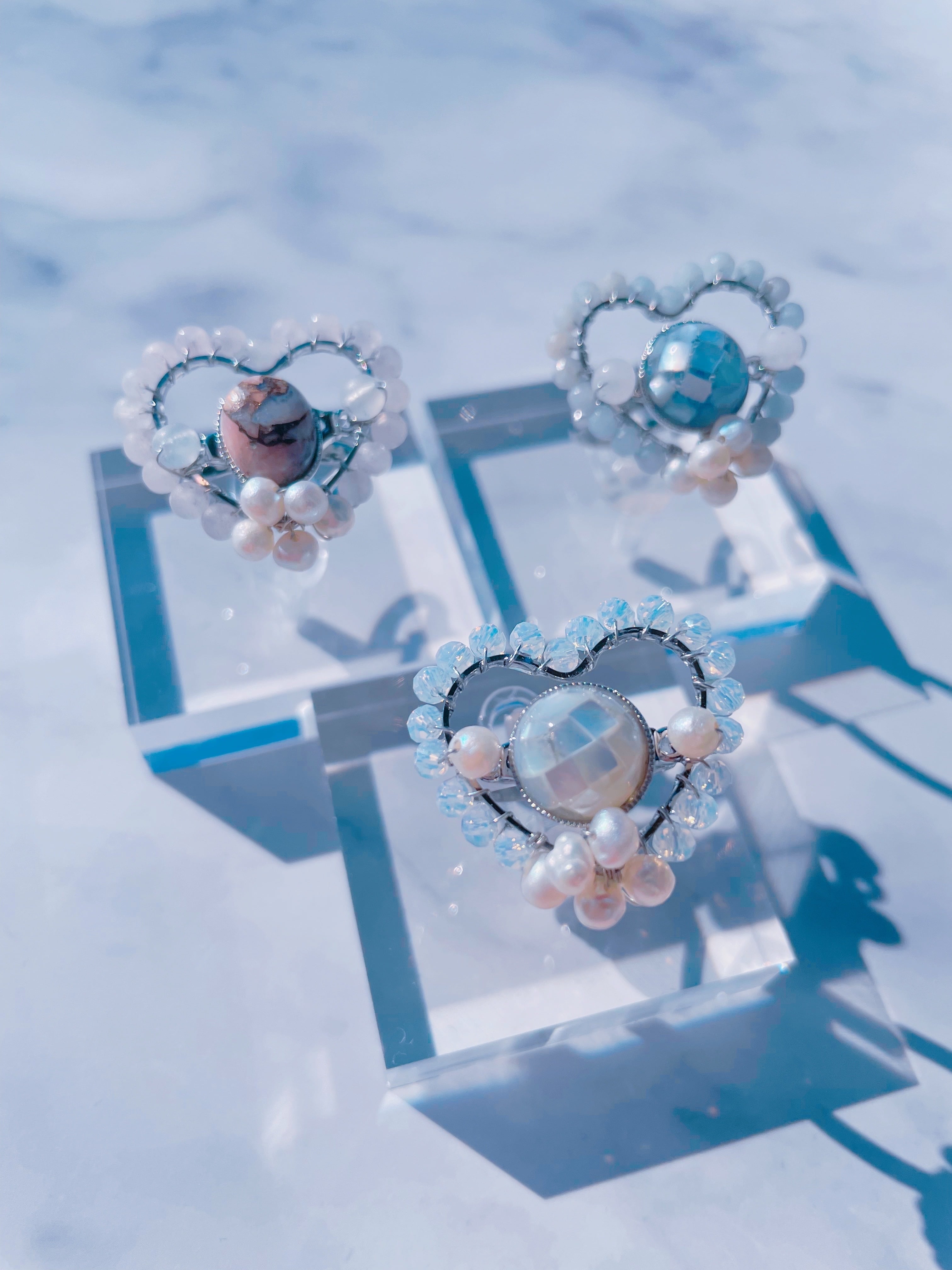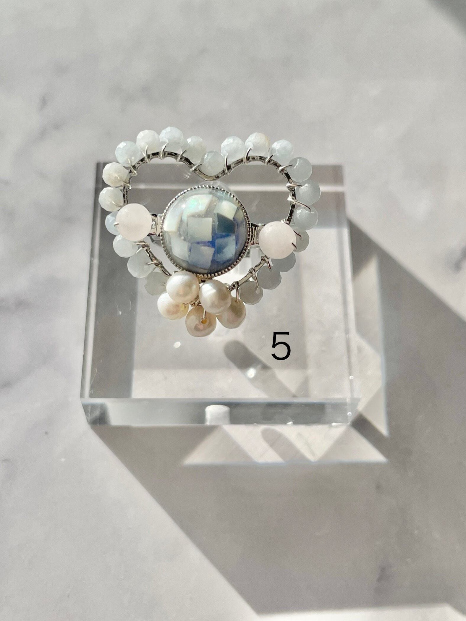 1、2:ローズクォーツ、合成石、淡水パールなど