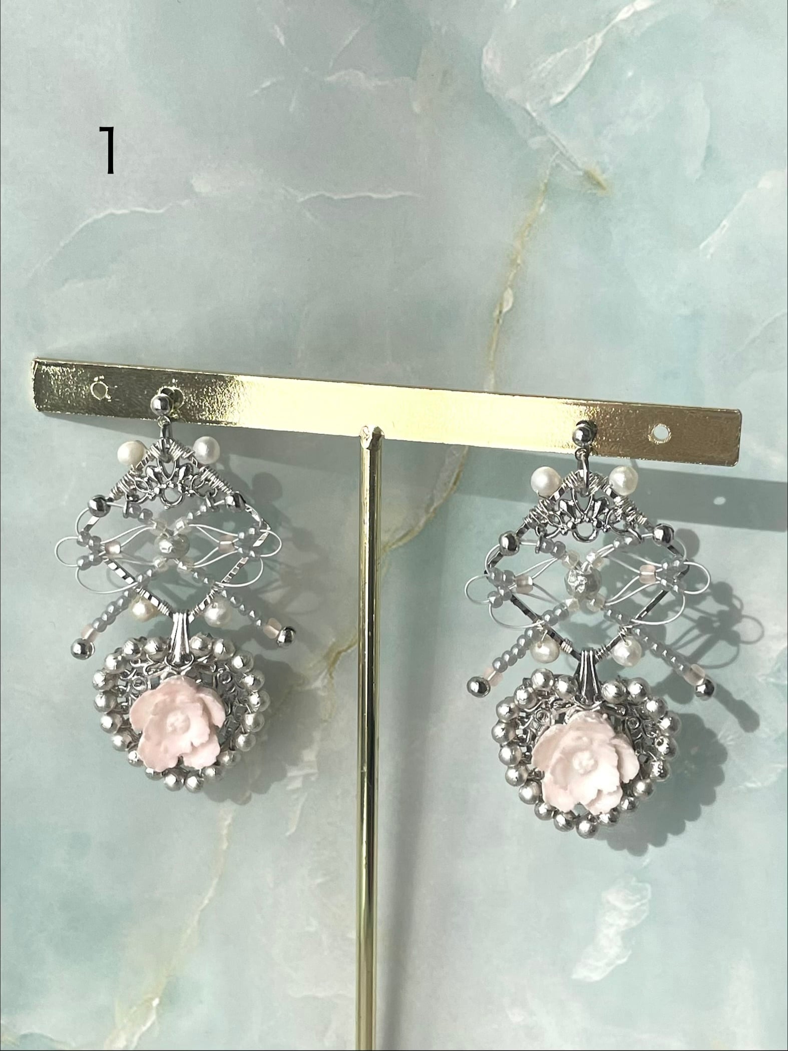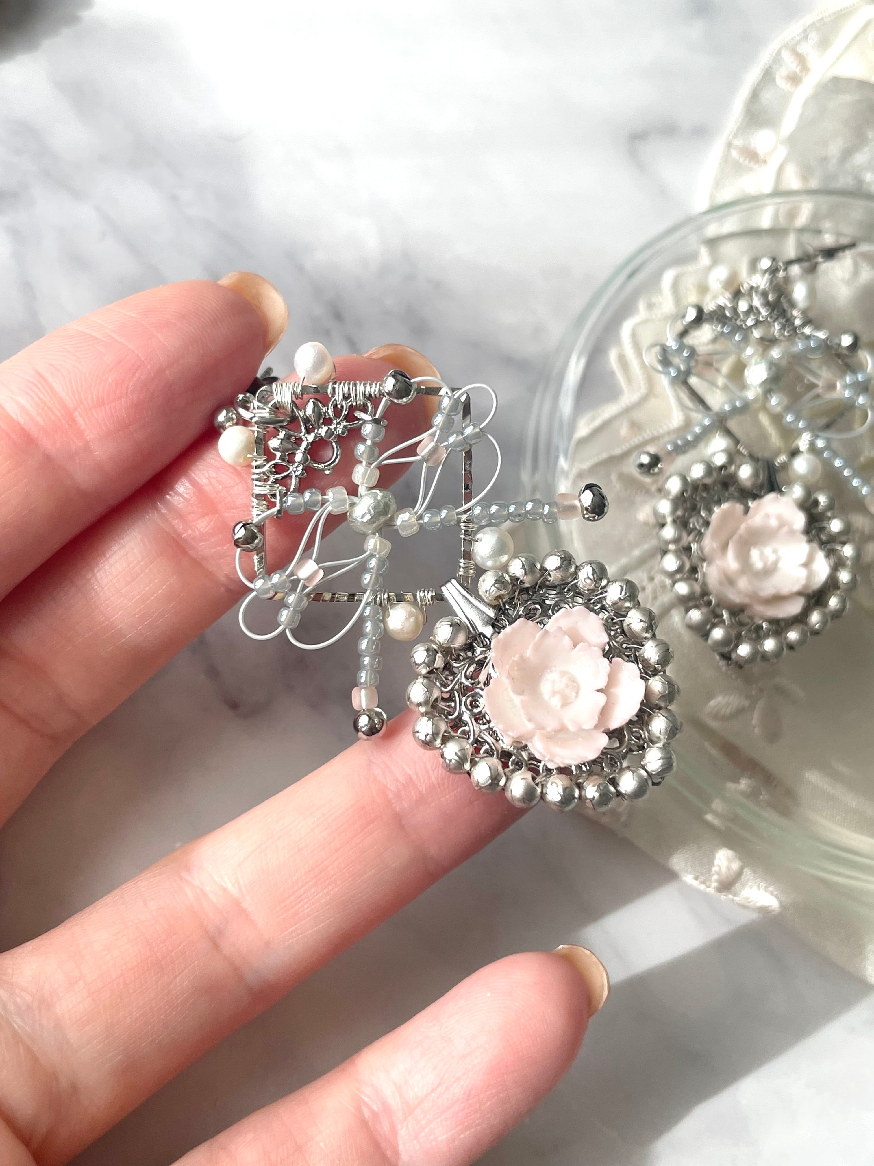 中央下のピンクのお花のカボションはヴィンテージパーツです