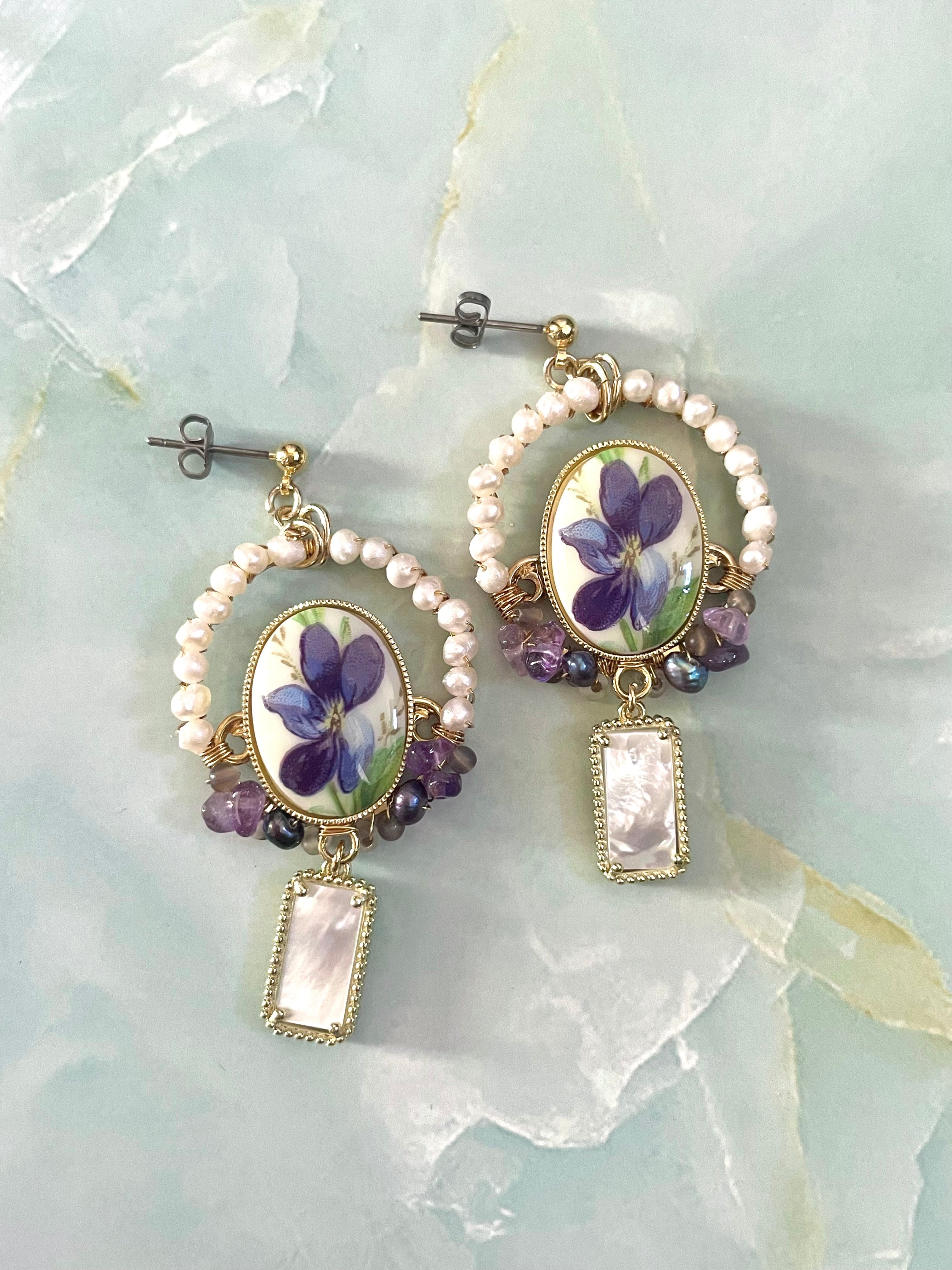 中央のスミレのカボションはヴィンテージです