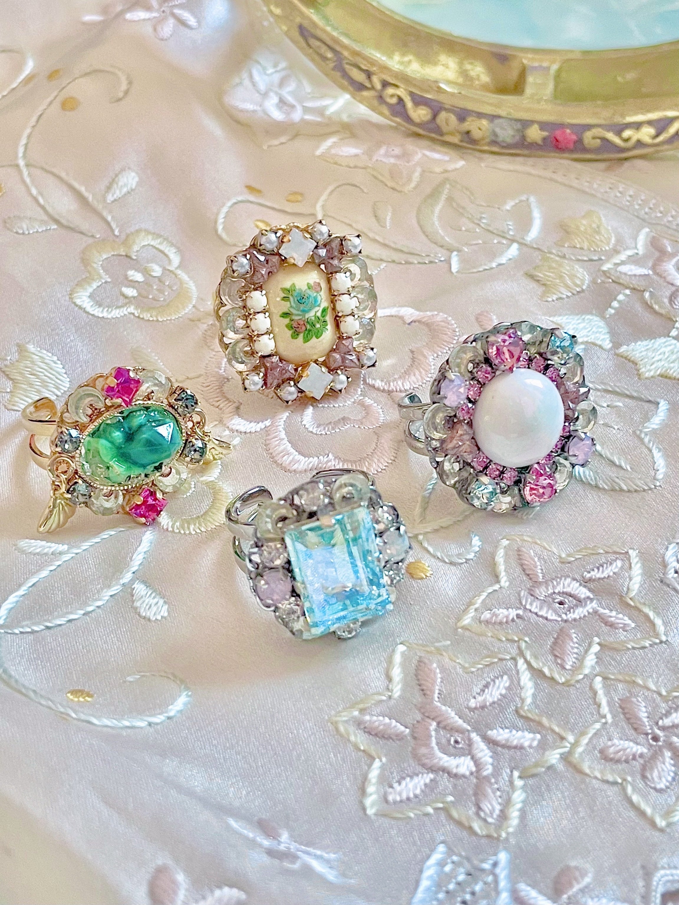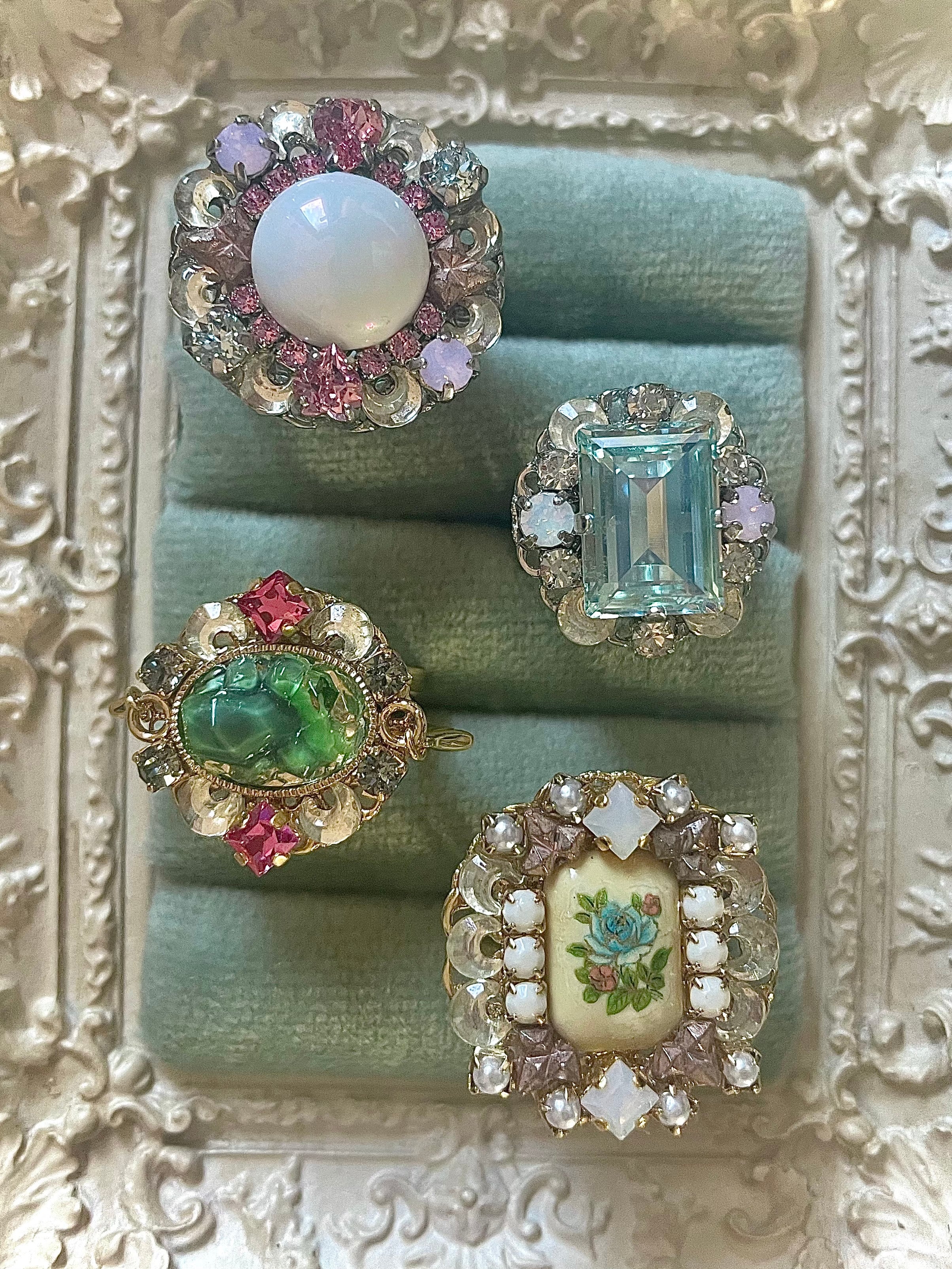 中央の緑のパーツはヴィンテージ(ガラス)です