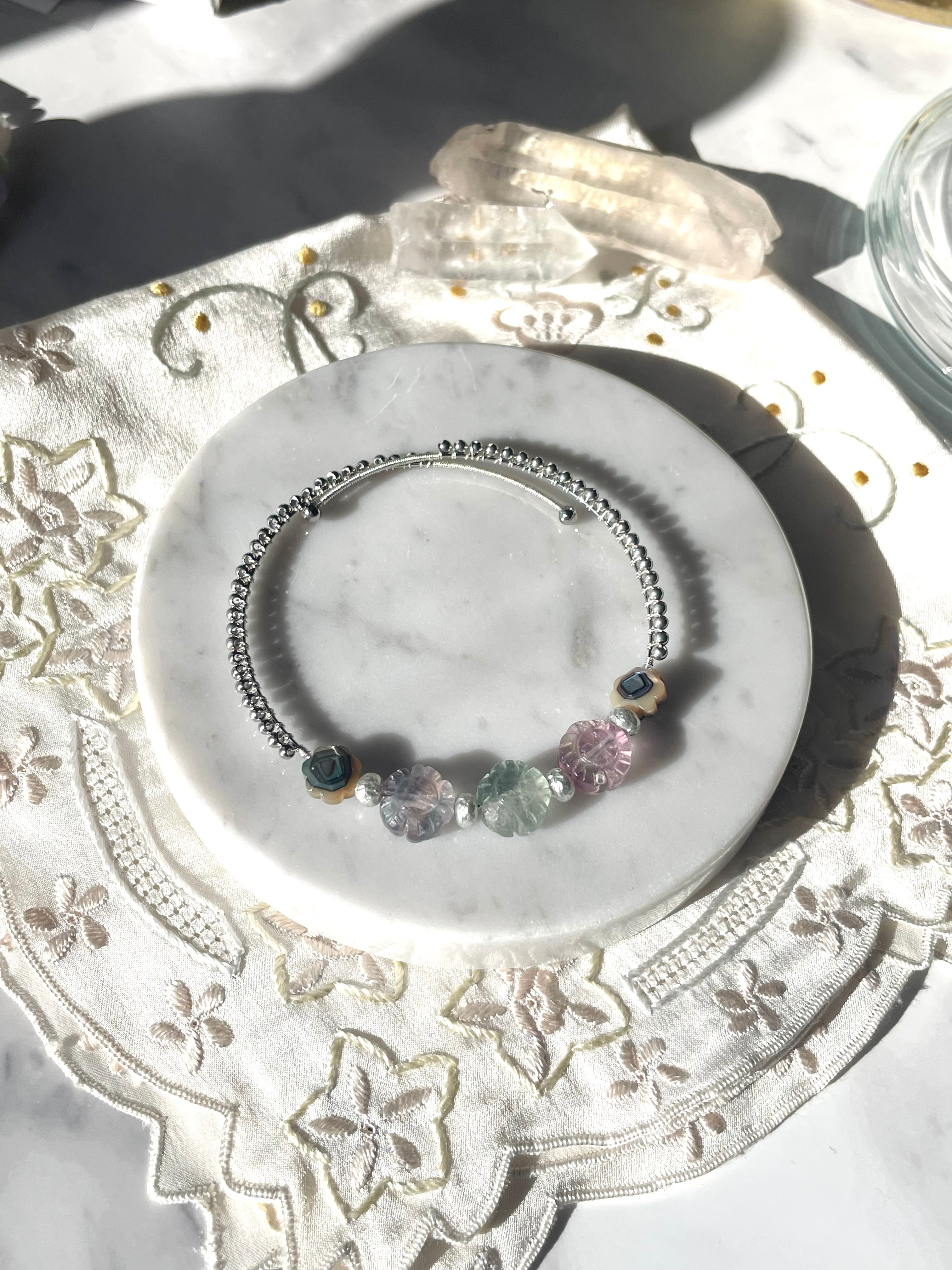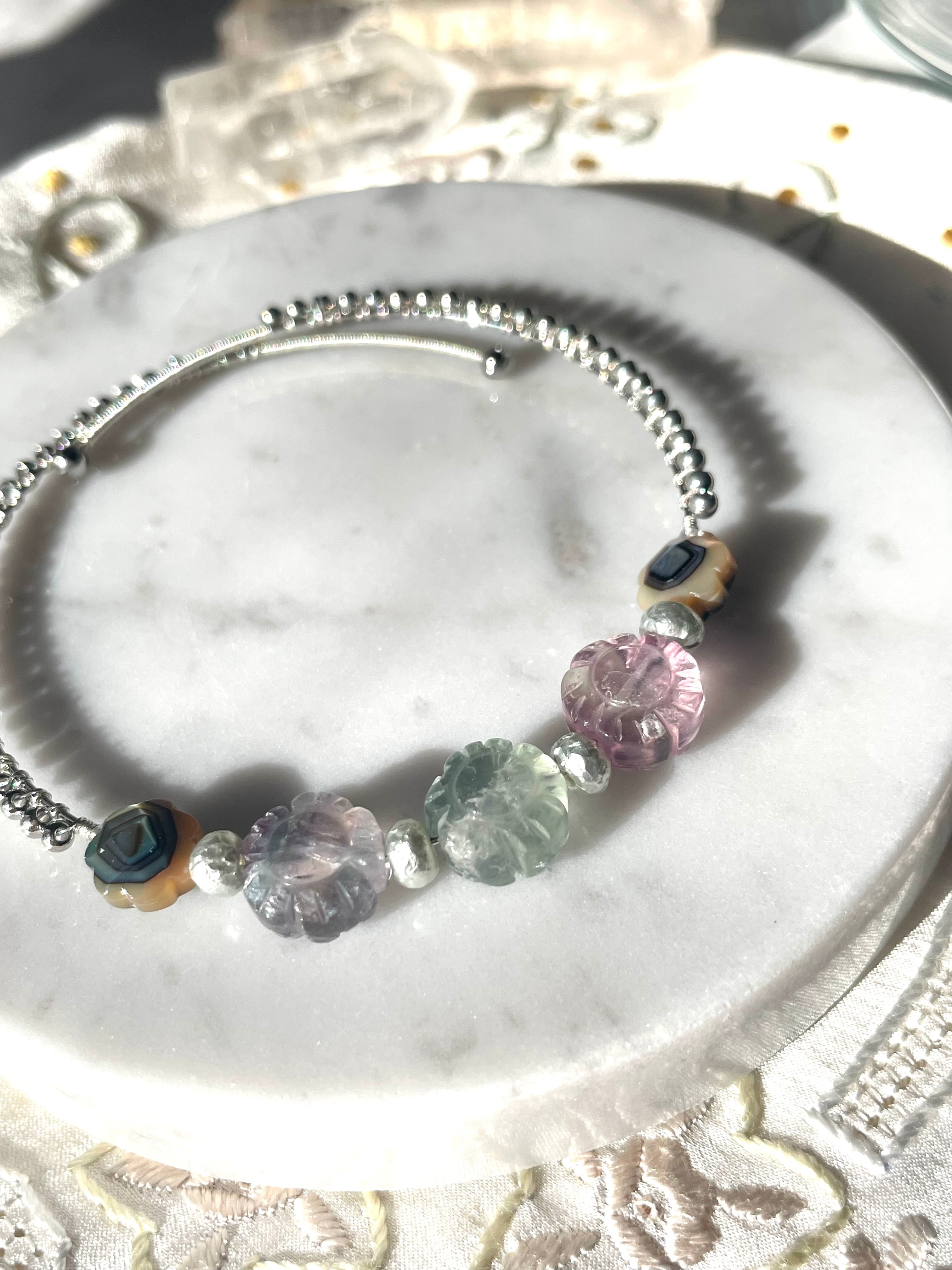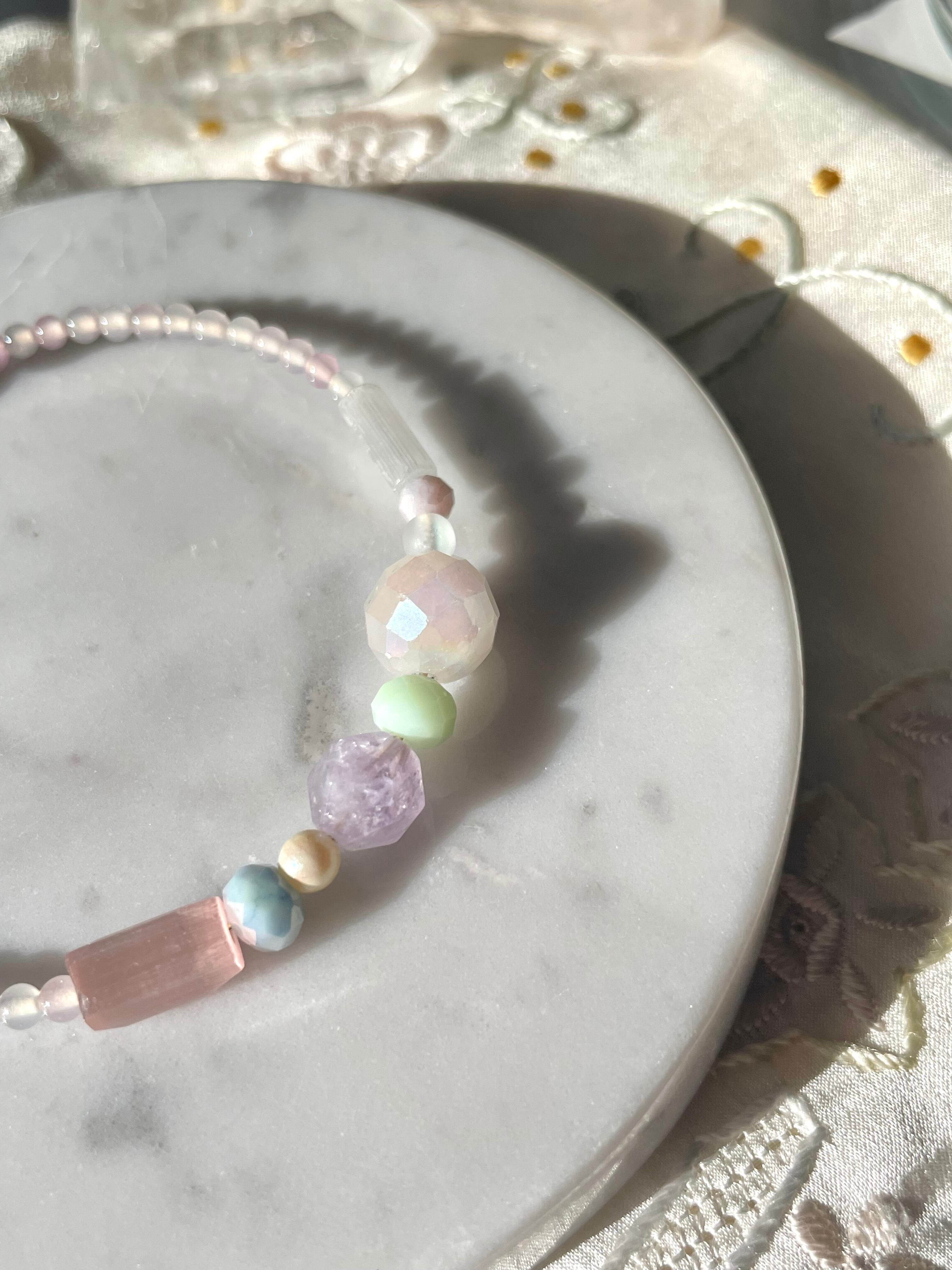 2 素材:ガラス、真鍮、ローズクォーツ、アメジストなど ※ガラスビーズにヴィンテージの素材を使用しています
