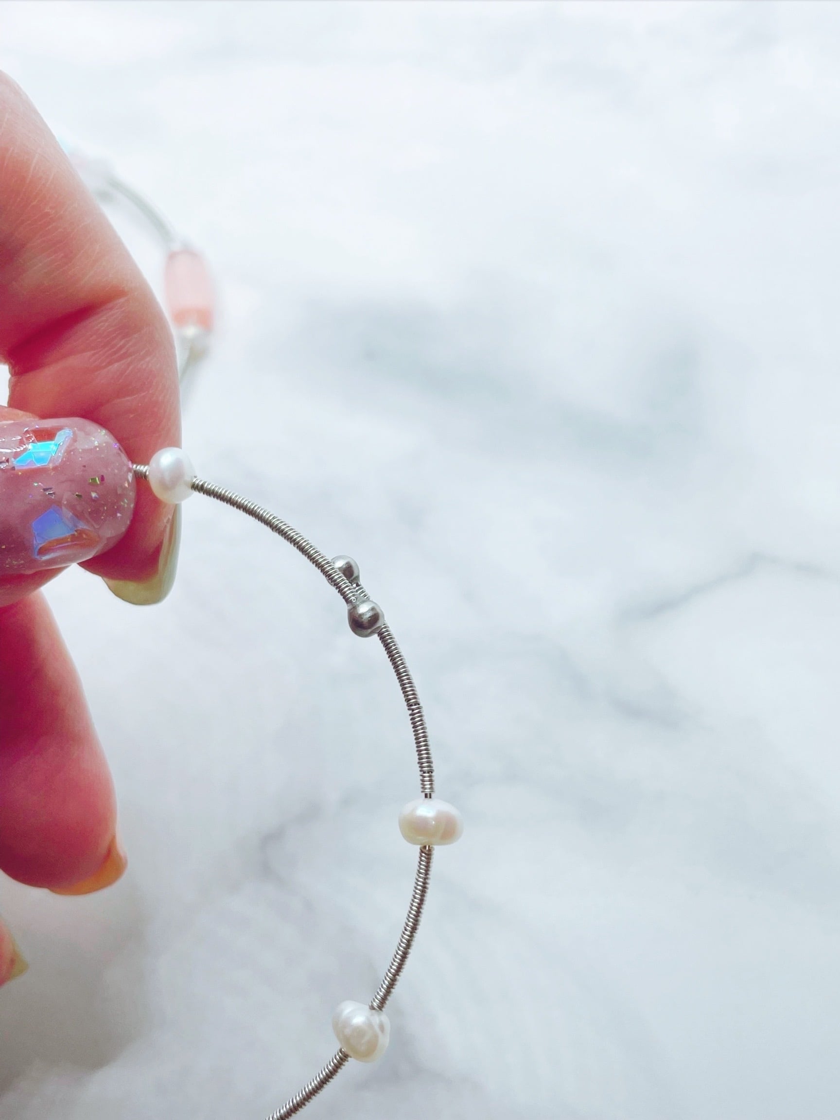 素材:真鍮、淡水パール、アクリル、ガラスなど