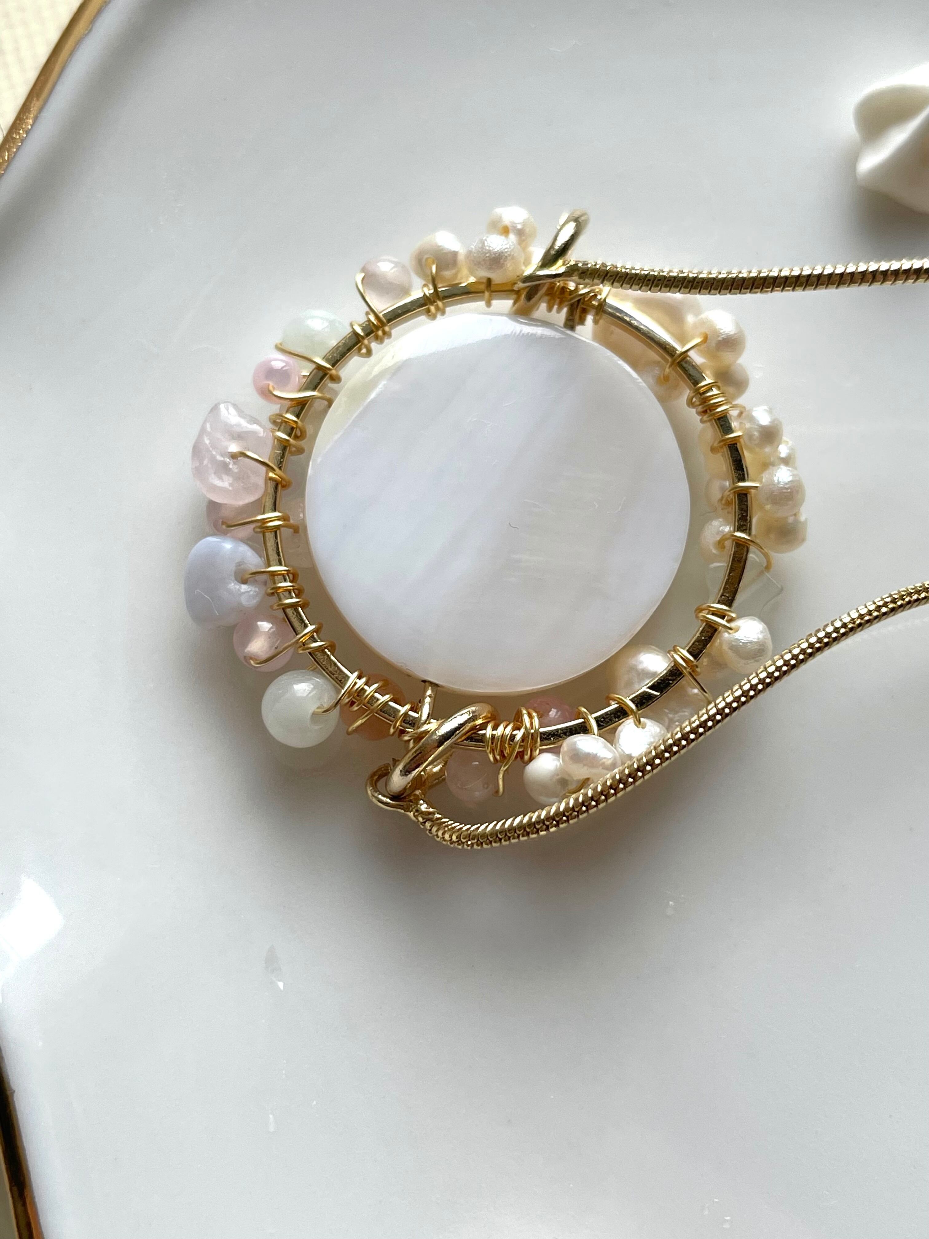 素材:貝、淡水パール、真鍮など